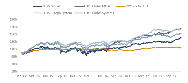 Wertentwicklung der LOYS-Fonds im Vergleich seit dem Jahr 2014