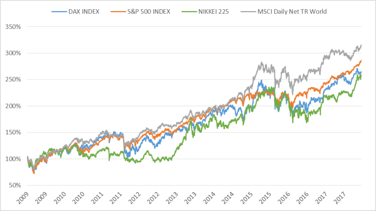 Derweil sprinten die Weltbörsen von einem Rekord zum anderen. Angetrieben von der Weltleitbörse in New York hellt sich das konjunkturelle Bild zunehmend auf. Die Stimmung in der Wirtschaft ist so gut wie seit vielen Jahren nicht mehr und der Bestand dauerhaft niedriger Realzinsen gilt weltweit als ausgemacht. Daran ändern auch kosmetische Leitzinserhöhungen auf 0,55 Prozent nichts, wie wir sie im November 2017 etwa in Großbritannien gesehen haben. Das vereinigte Königreich laboriert offenbar an hausgemachten Sonderproblemen, die mit dem Namen BREXIT verbunden sind und mittlerweile zu sichtbaren Friktionen bei Wachstum und Inflation geführt haben. Besser sieht die Lage in unserem Nachbarland Frankreich aus, wo der Präsident Emmanuel Macron - zum Erstaunen Vieler - seine Arbeitsmarktreformen durchsetzen konnte. Wichtig ist zudem, dass der Ausnahmezustand in Frankreich inzwischen aufgehoben wurde.