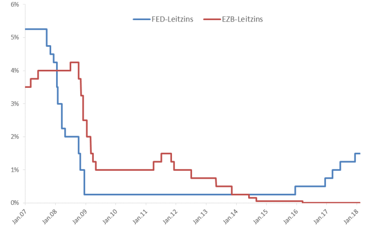 Es besteht inzwischen kein Zweifel daran, dass die Zinswende in den USA vollzogen ist. Dort wird in diesem Jahr mit drei weiteren Leitzinserhöhungen gerechnet. Die Beobachtung der Inflation wird im Jahr 2018 von besonderer Wichtigkeit sein und Höhe sowie Geschwindigkeit des Zinsanstiegs bestimmen. Diese Zinswende kann in Europa nicht ignoriert werden und wird über kurz oder lang ebenfalls zu steigenden Zinsen führen. Allerdings beharrt die Europäische Zentralbank darauf, dass in der Eurozone keine Eile für die Anhebung der Leitzinsen besteht.