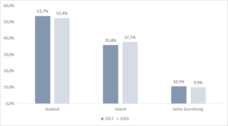 Durchschnittlicher Anteil in- und ausländischer Investoren am DAX